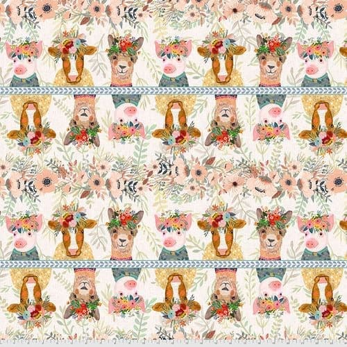 This collection of picturesque farm animals puts the divine in bovine. Pastel prints of pigs, goats, sheep, chickens and cows adorned in pretty floral wreaths fill this collection with vernal charm. Branches, blooms, leaves, vines, assorted foliage and at night, a few owls pop on gray, yellow, blue, white, plum and peach prints.